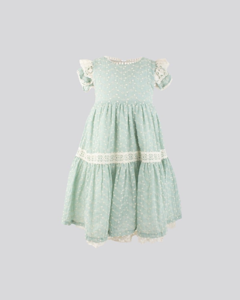 Your child will enjoy a bright look with this dress, woven with lace and a tree print. It features a comfortable inner layer of cotton so that your princess will have a comfortable and soft look at parties.